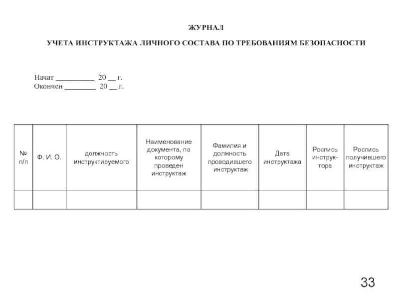 УЧЕТА ИНСТРУКТАЖА ЛИЧНОГО СОСТАВА ПО ТРЕБОВАНИЯМ БЕЗОПАСНОСТИ