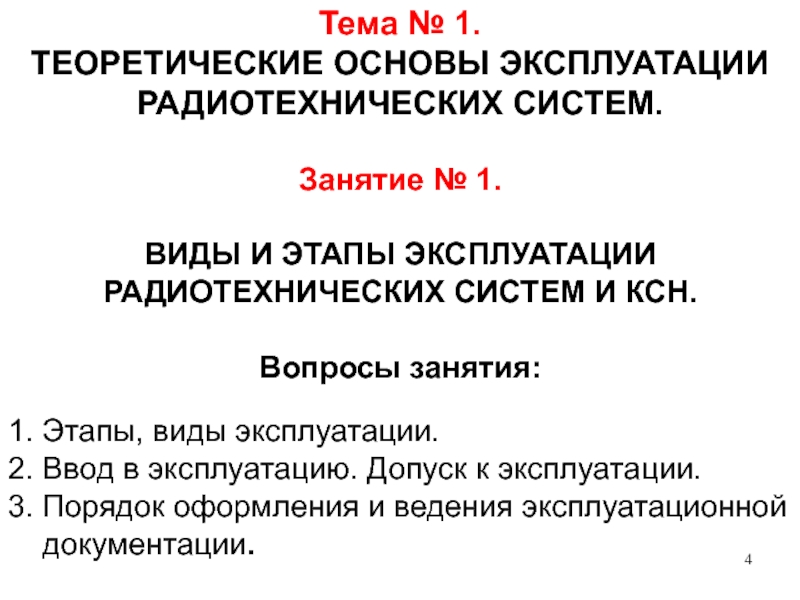 ТЕОРЕТИЧЕСКИЕ ОСНОВЫ ЭКСПЛУАТАЦИИ РАДИОТЕХНИЧЕСКИХ СИСТЕМ.