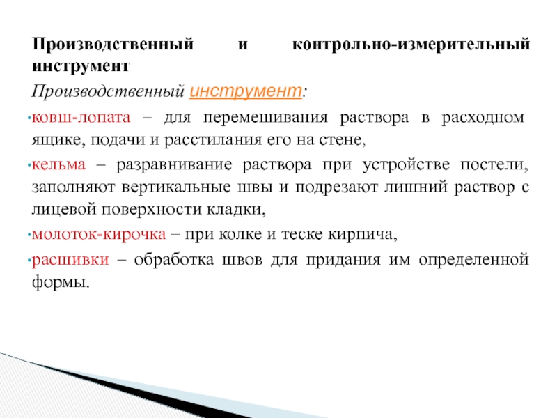 Слайд 43Производственный и контрольно-измерительный инструмент