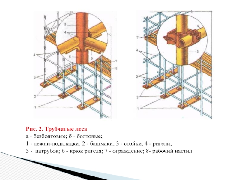 Слайд 51Трубчатые леса ЦНИИОМТП (рис. 2, 6) конструктивно отличаются от описанных. Стойки не