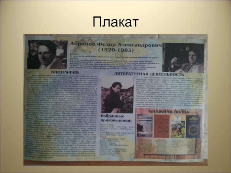 Состоит из нескольких блоков (постеров), на каждом из которых расположена