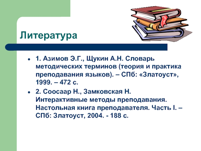 1. Азимов Э.Г., Щукин А.Н. Словарь методических терминов (теория и практика