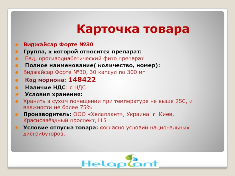 Производитель: ООО «Хелаплант», Украина г. Киев, Краснозвёздный проспект,115