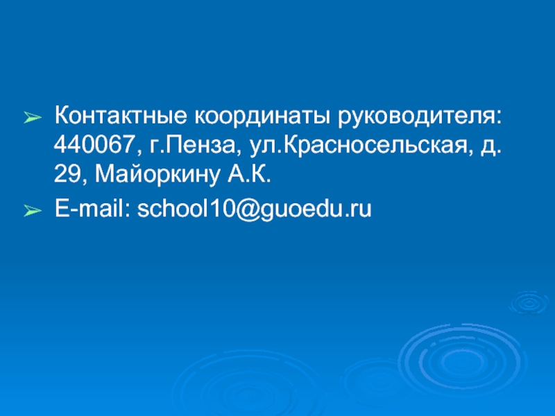 Руководитель: Майоркин Александр Константинович, учитель географии МОУ СОШ № 10 г.Пензы
