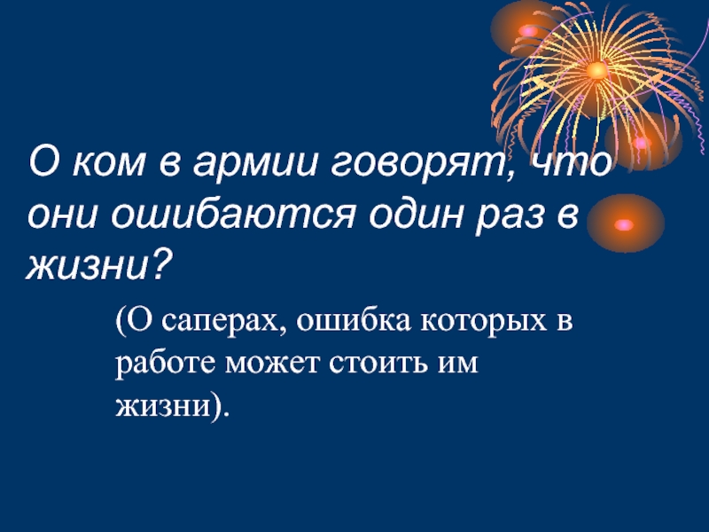 (О саперах, ошибка которых в работе может стоить им жизни).