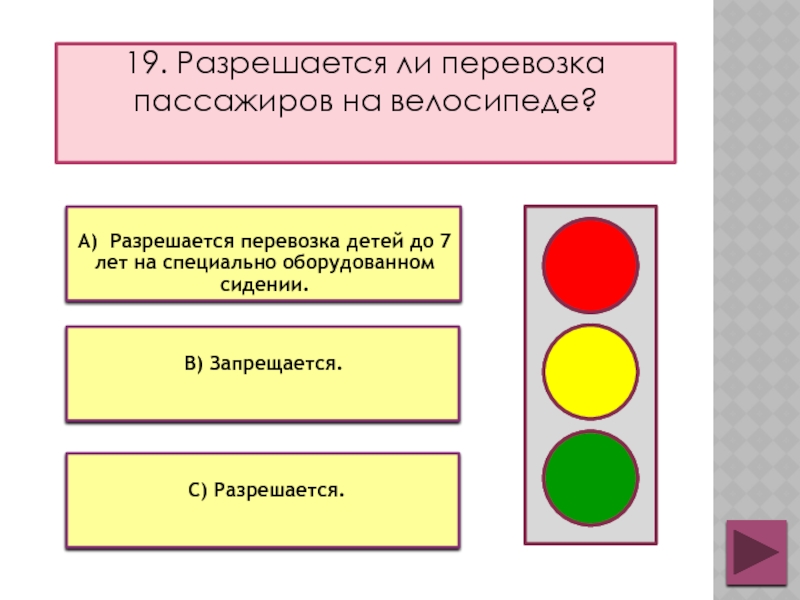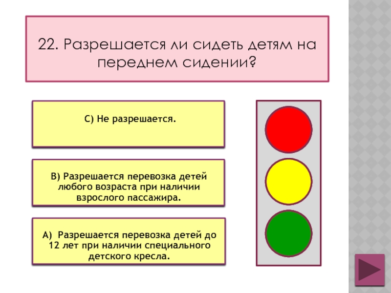 А) Разрешается перевозка детей до 12 лет при наличии специального детского кресла.