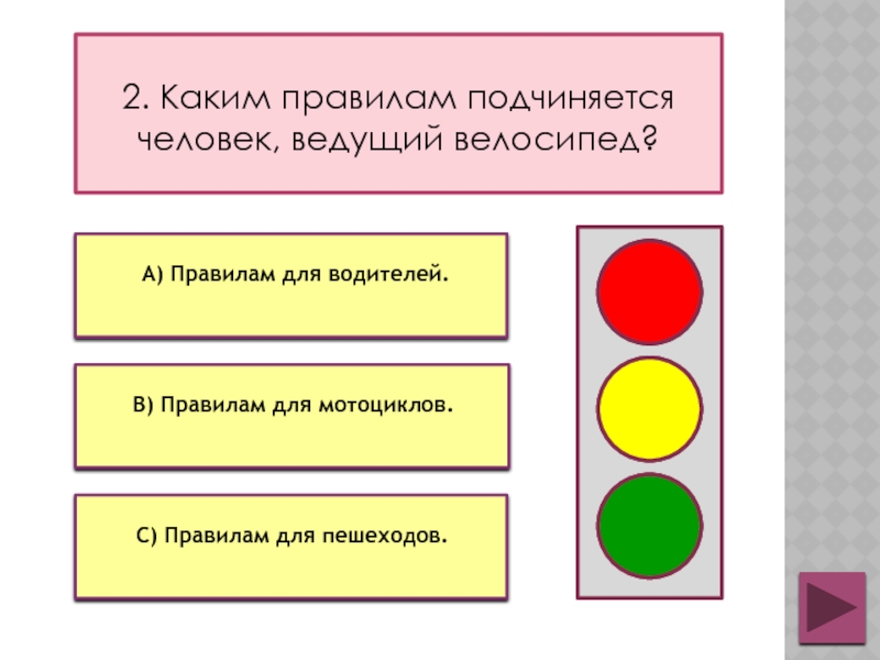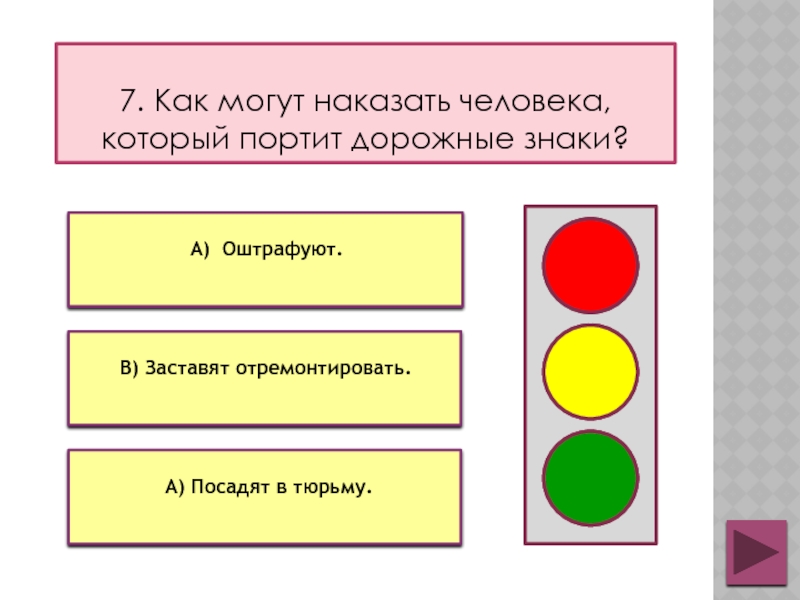 А) Этот светофор поломан, так как после красного должен загореться зелёный.