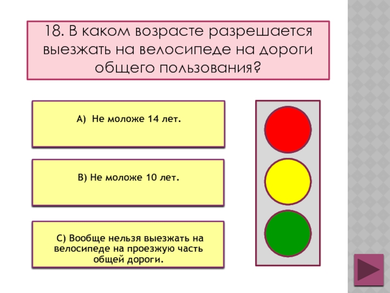С) Вообще нельзя выезжать на велосипеде на проезжую часть общей дороги.