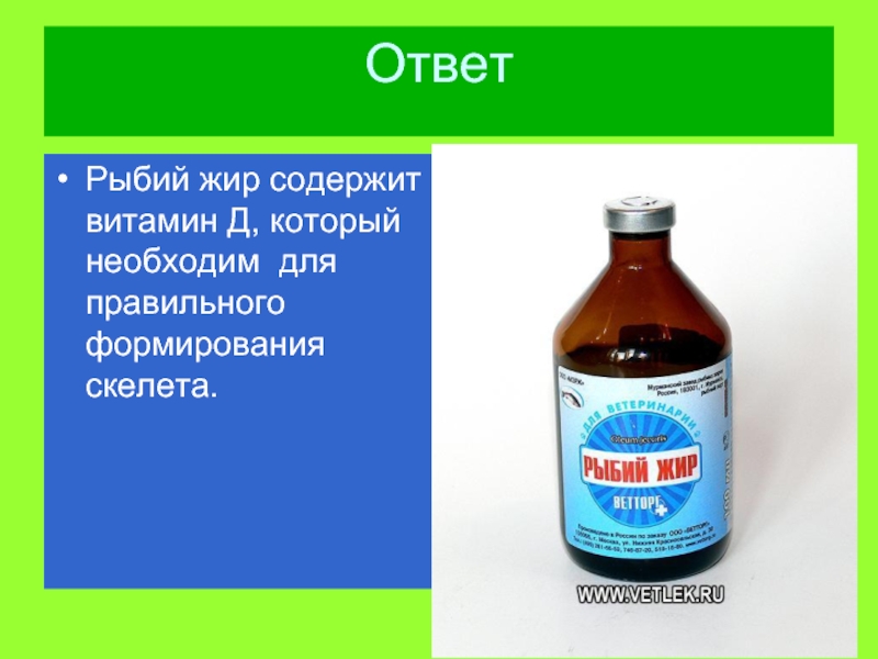 Рыбий жир содержит витамин Д, который необходим для правильного формирования скелета.
