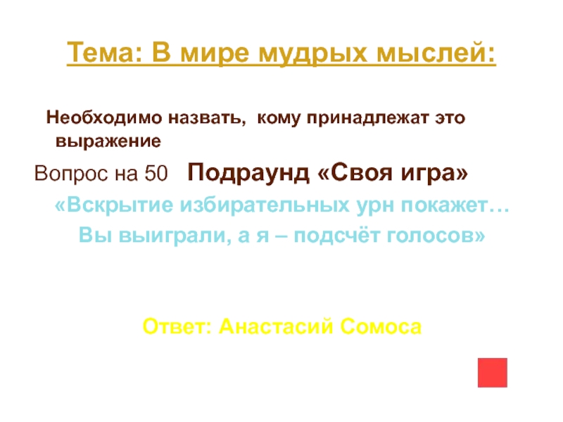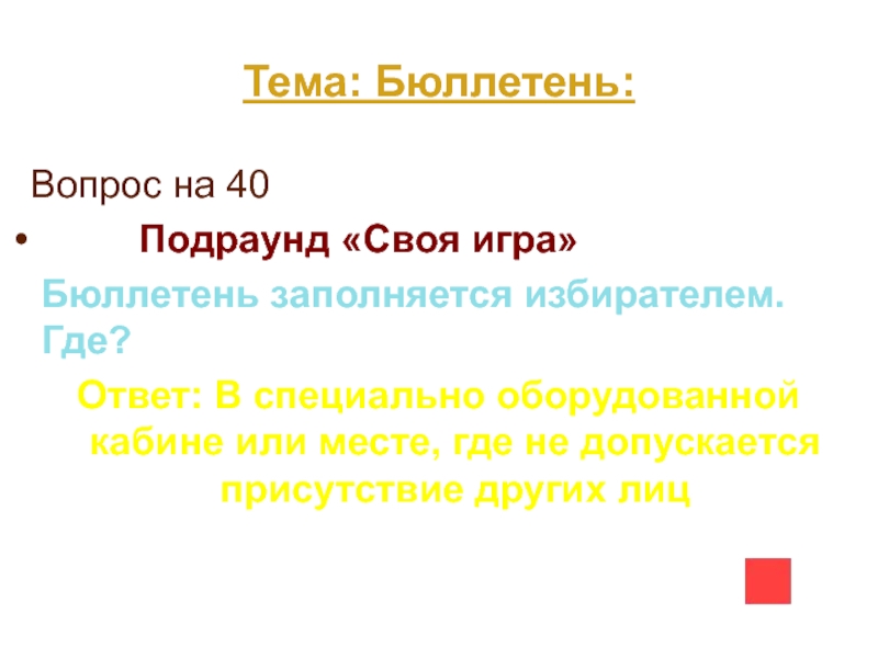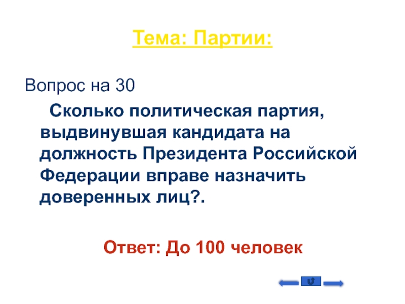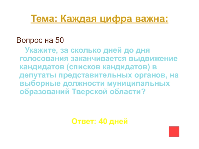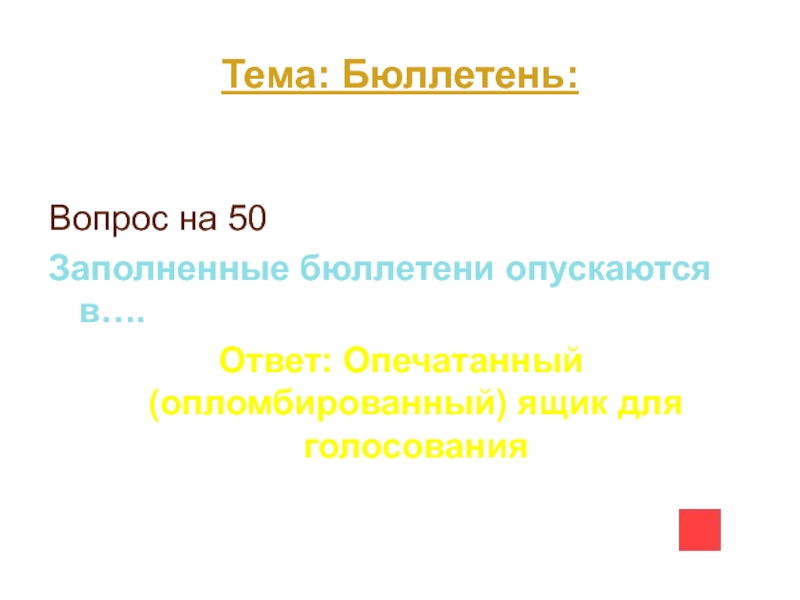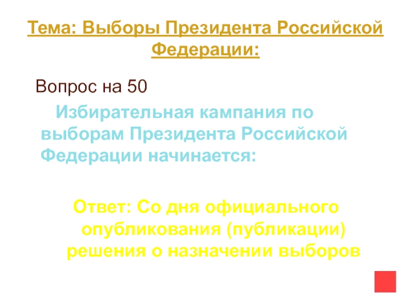 Слайд 50Тема: Выборы Президента Российской Федерации: