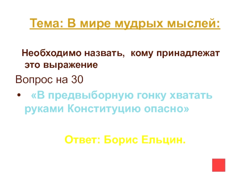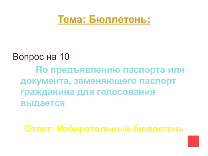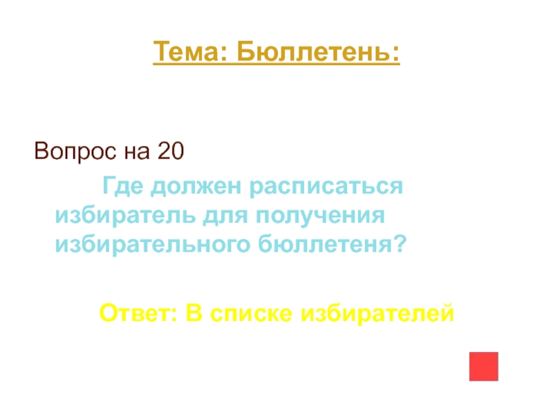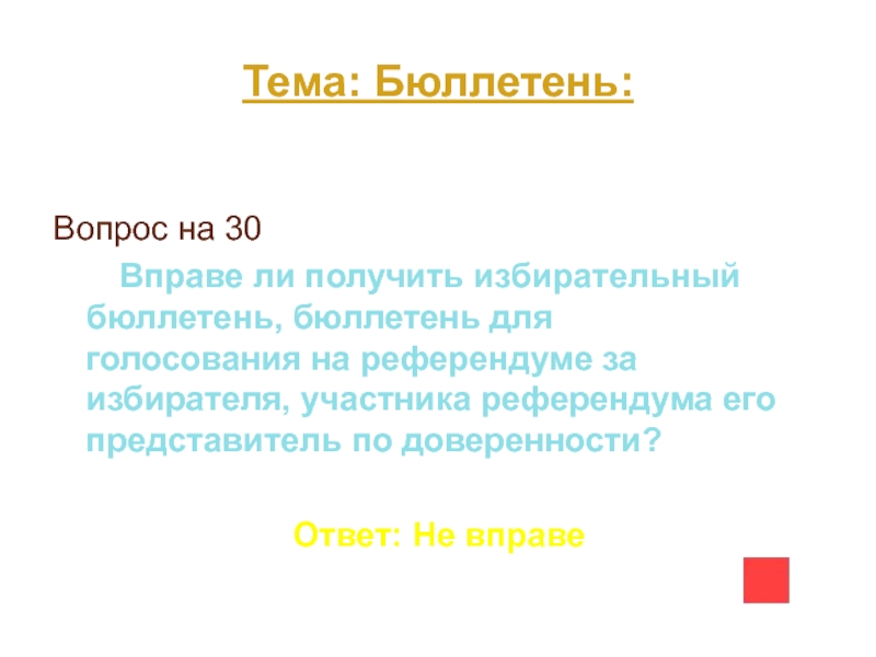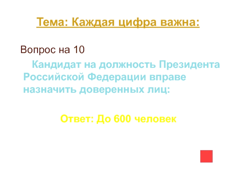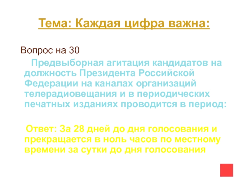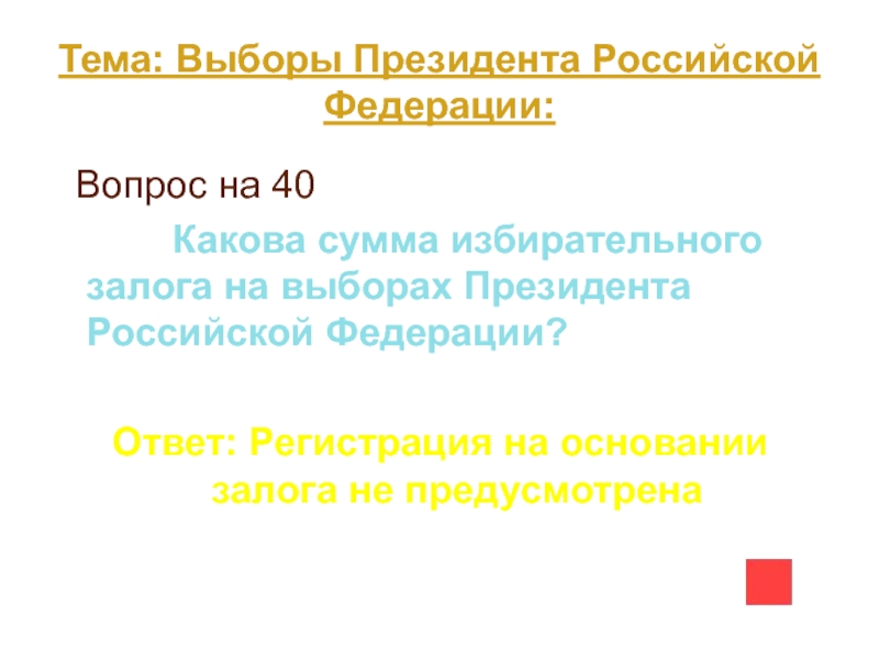 Слайд 52Тема: Выборы Президента Российской Федерации: