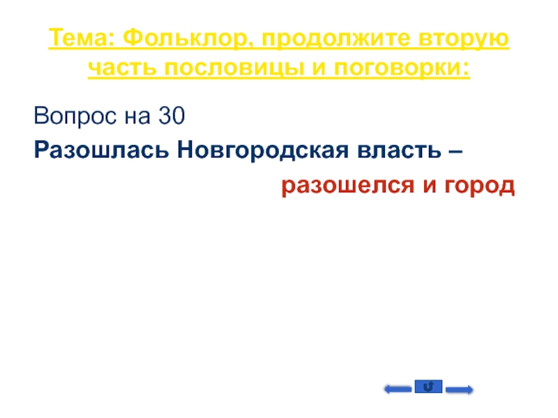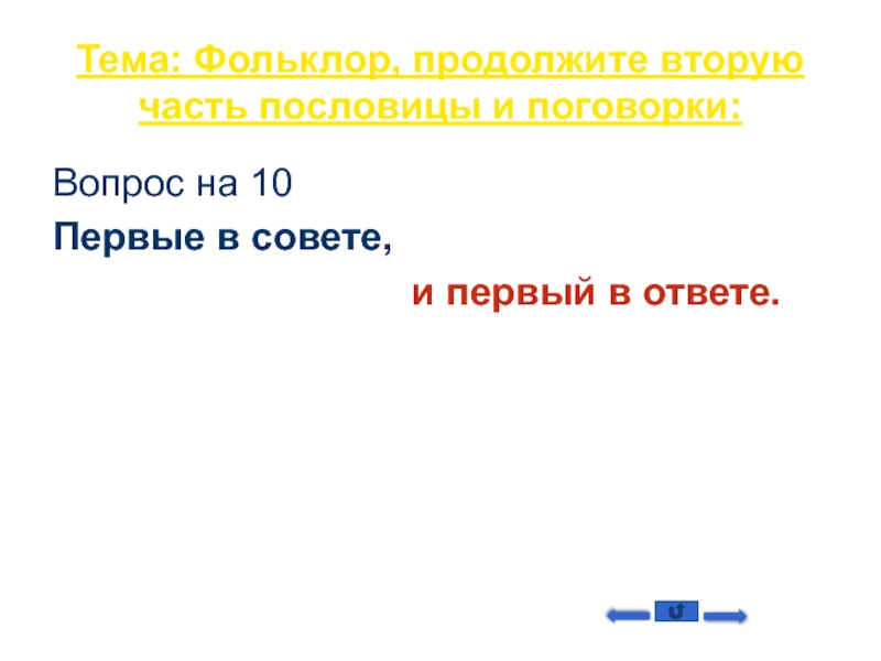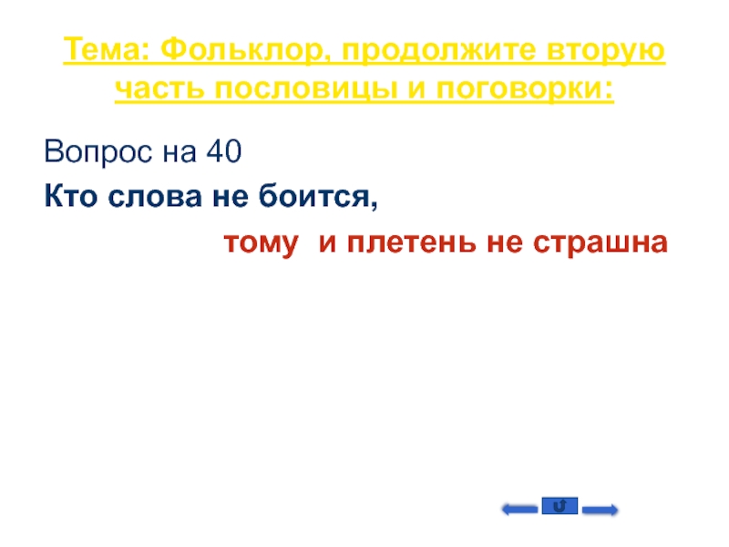 Слайд 9Тема: Фольклор, продолжите вторую часть пословицы и поговорки: