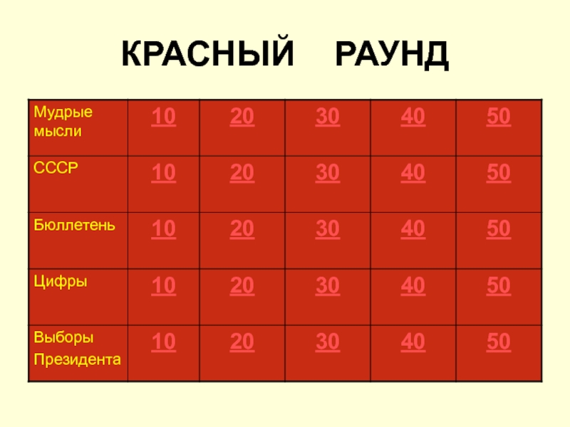 II — «Красный», вопросы оцениваются от 10 до 50 баллов;