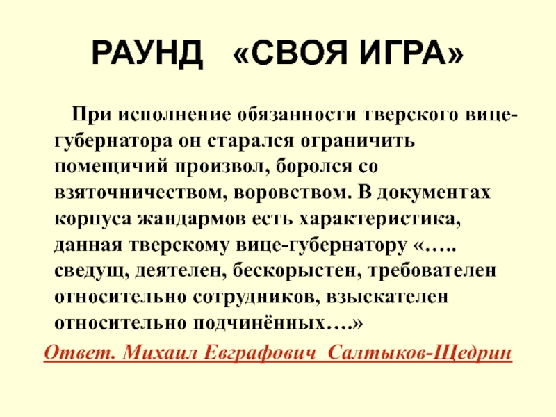 Ответ. Михаил Евграфович Салтыков-Щедрин