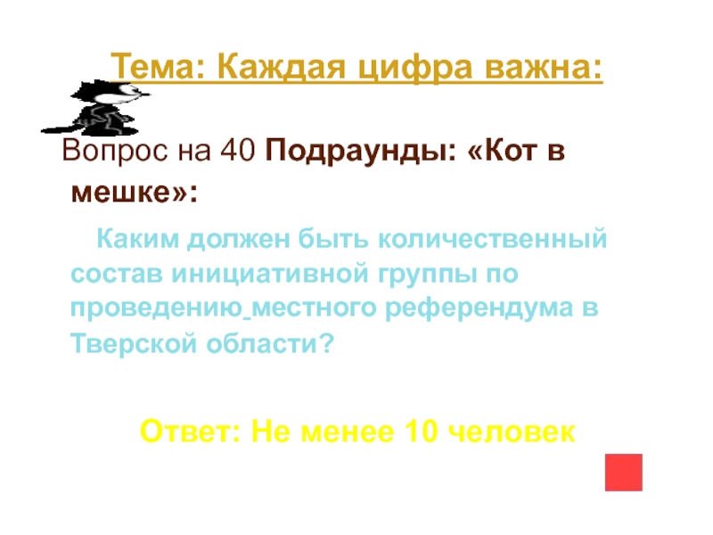 Вопрос на 40 Подраунды: «Кот в мешке»: