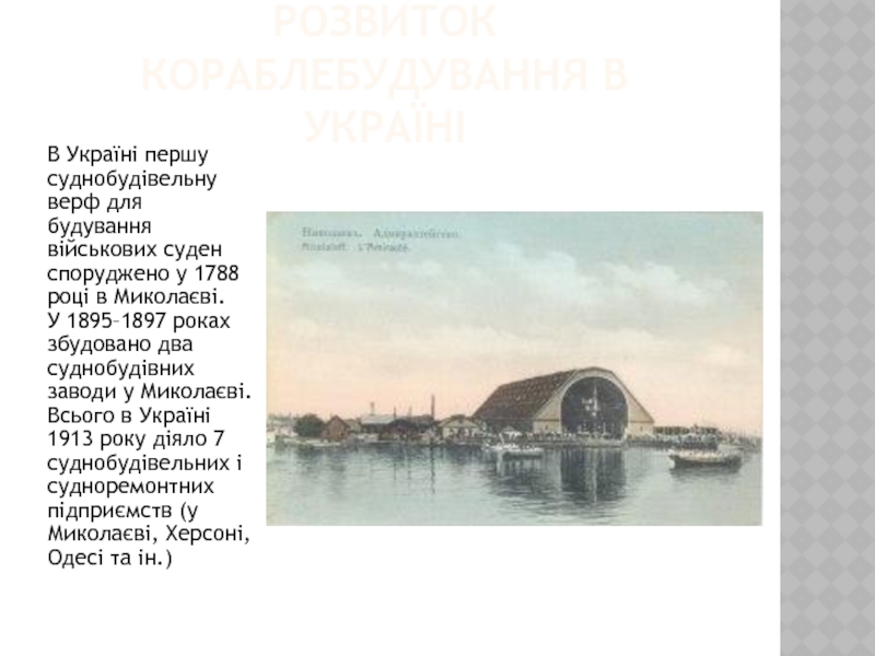 Слайд 7РОЗВИТОК КОРАБЛЕБУДУВАННЯ В УКРАЇНІ