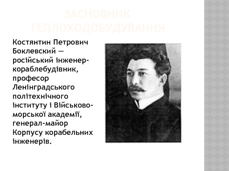 Слайд 4ЗАСНОВНИК ТЕПЛОХОДОБУДУВАННЯ