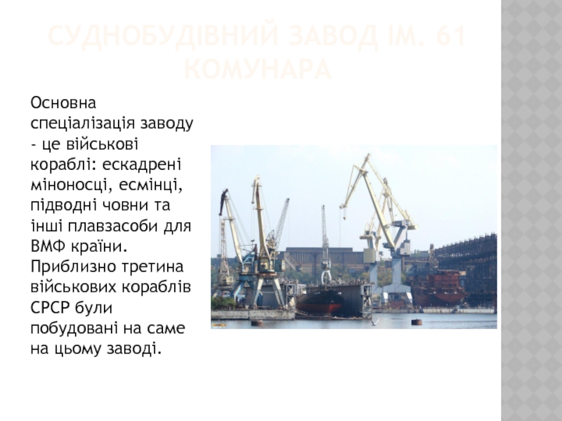 Слайд 9СУДНОБУДІВНИЙ ЗАВОД ІМ. 61 КОМУНАРА