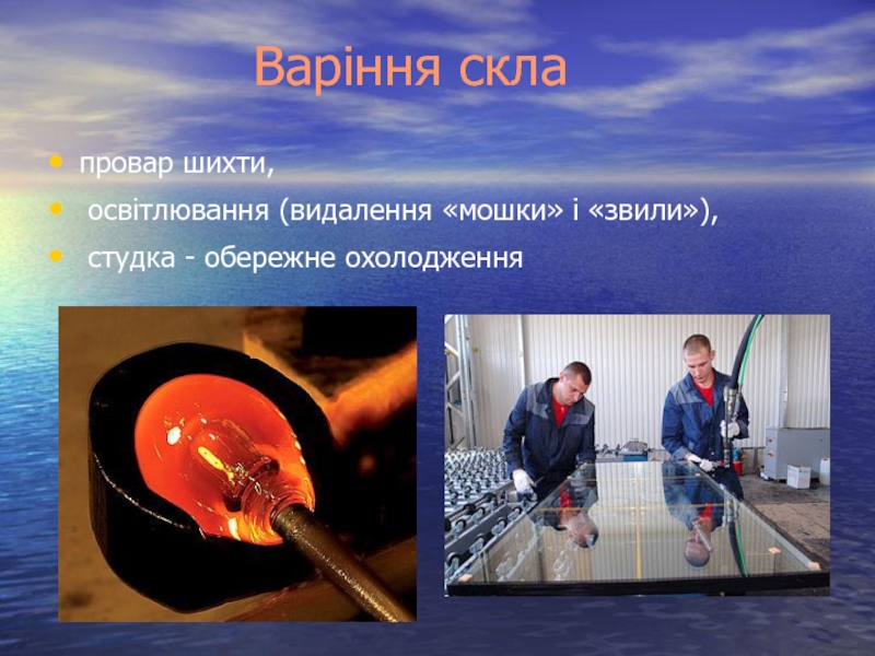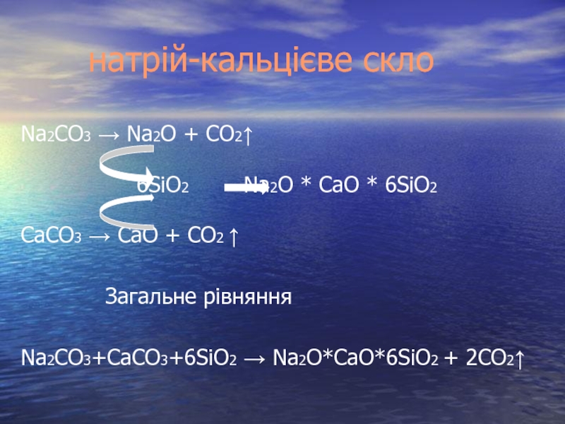 Na2CO3+CaCO3+6SiO2 → Na2O*CaО*6SiO2 + 2CO2↑