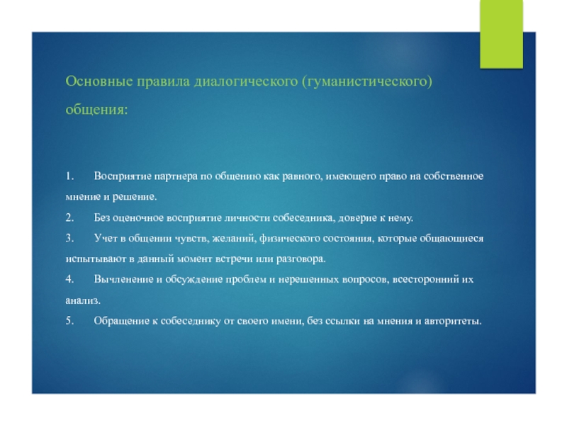 2. Без оценочное восприятие личности собеседника, доверие к нему.