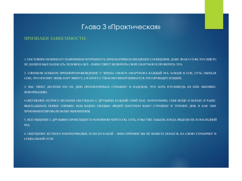 ПРИЗНАКИ ЗАВИСИМОСТИ: