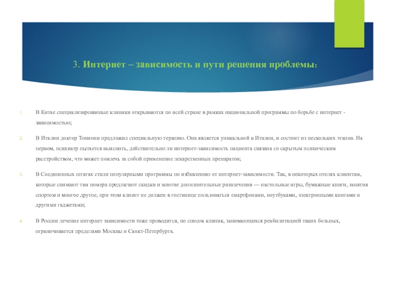 Слайд 243. Интернет – зависимость и пути решения проблемы: