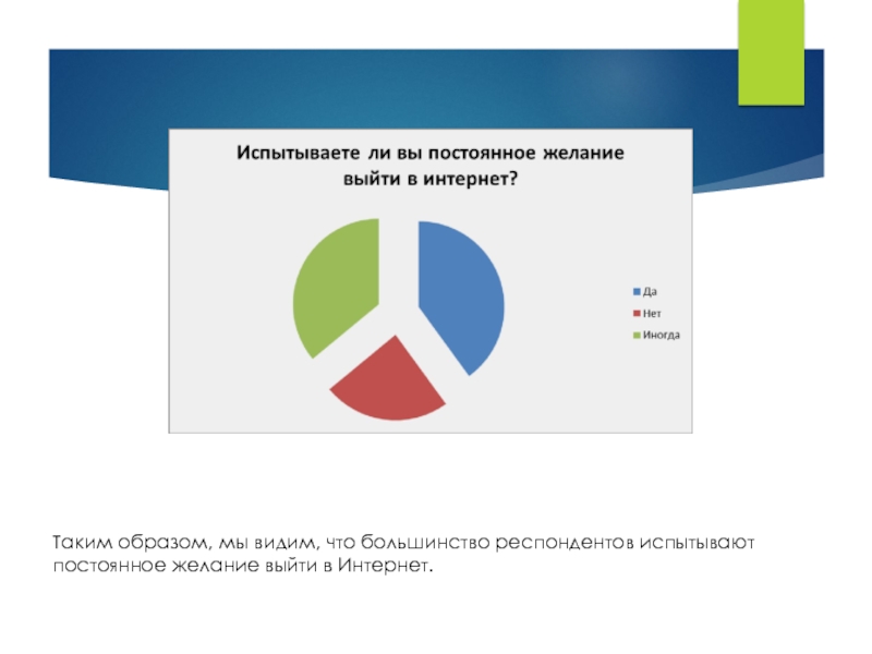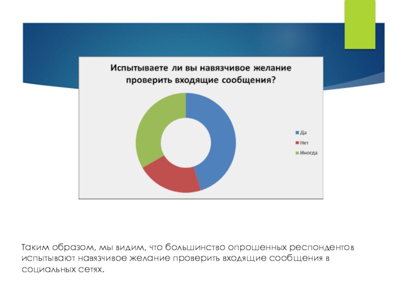 Слайд 20Таким образом, мы видим, что большинство опрошенных респондентов испытывают навязчивое желание
