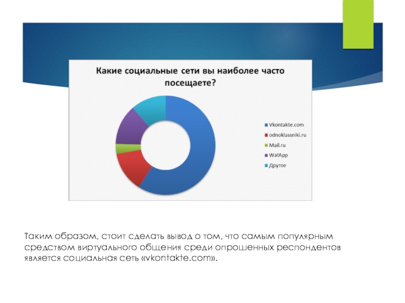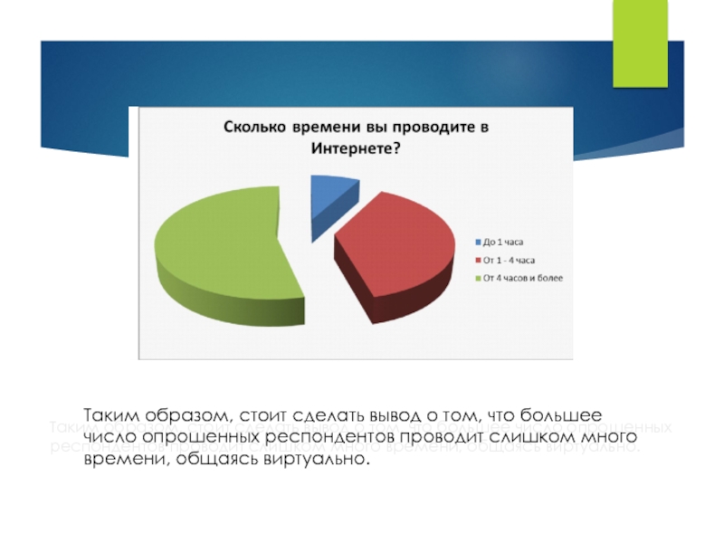 Слайд 18Таким образом, опрошенные респонденты предпочитают реальное общение виртуальному из-за того, что