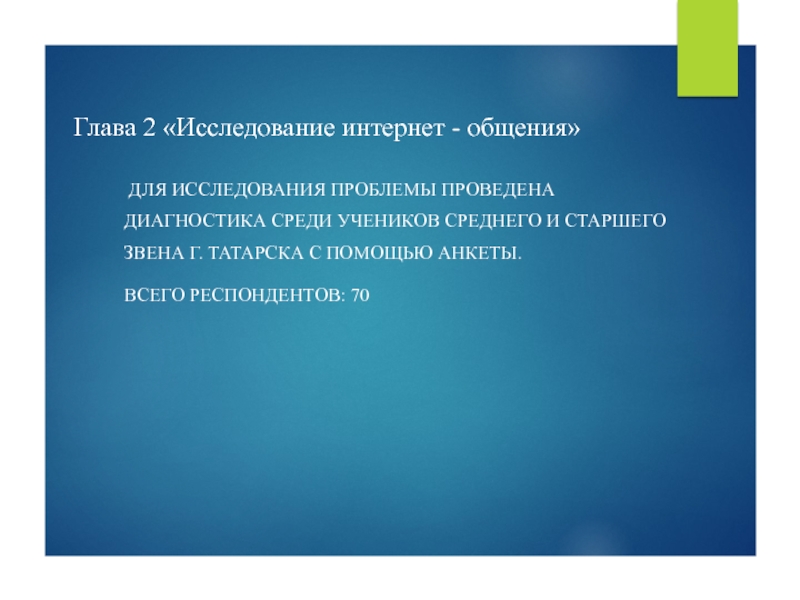 Слайд 12Глава 2 «Исследование интернет - общения»