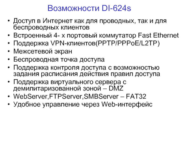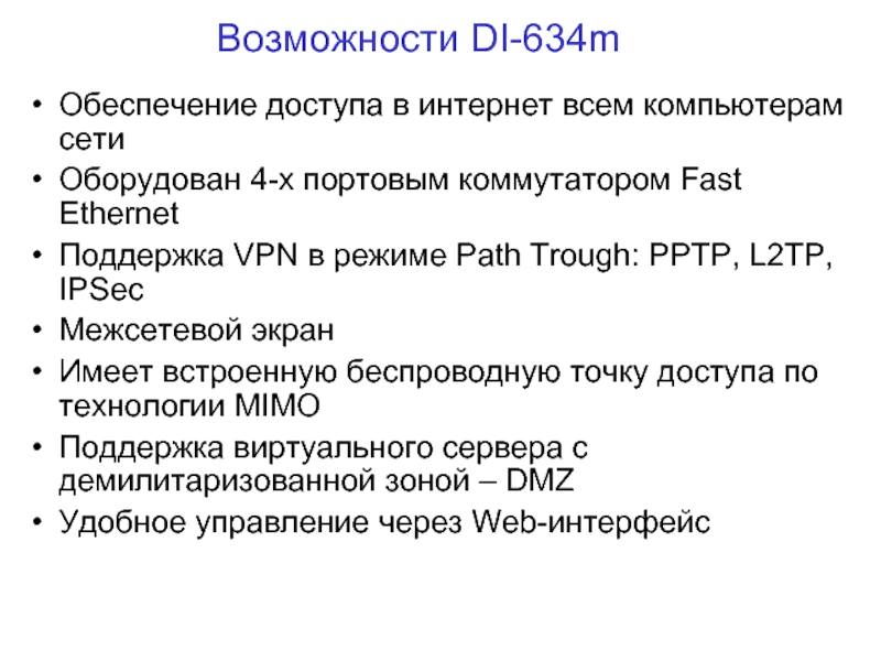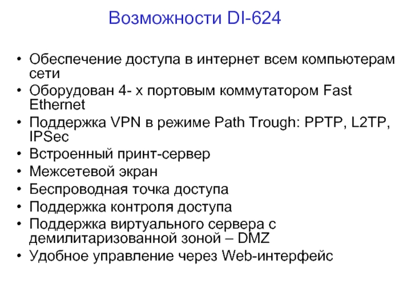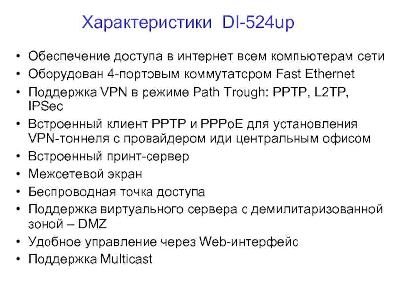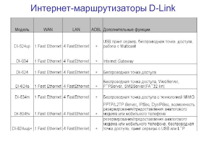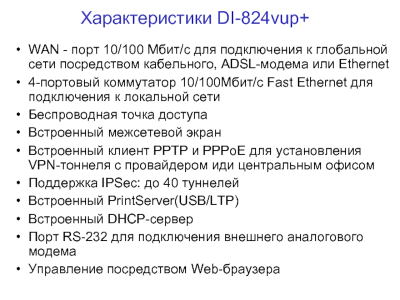Слайд 77Интернет - маршрутизатор: DI-824vup+