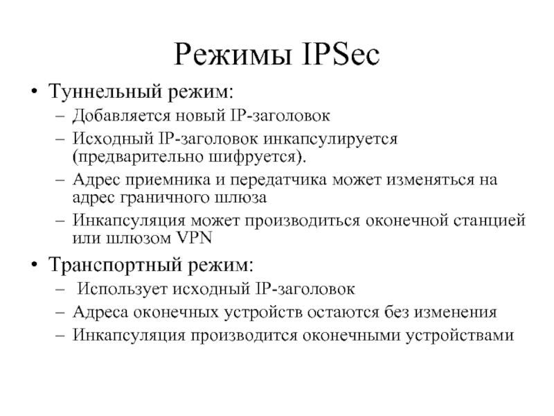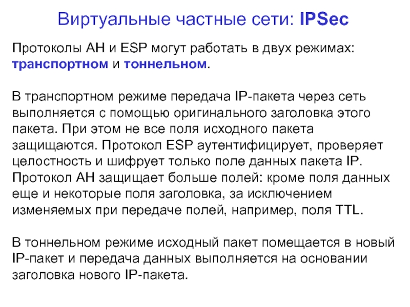 Туннелирование – позволяет зашифровать пакет вместе со служебной информацией.