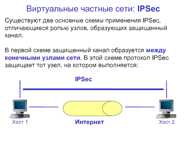 VPN-клиент (хост) решается программно. Выполняет функции шифрования и аутентификации. Сеть может быть построена без использования VPN-клиентов.