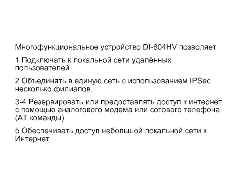 Слайд 75Многофункциональное устройство DI-804HV позволяет