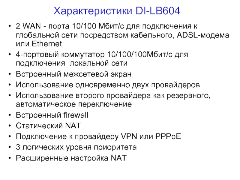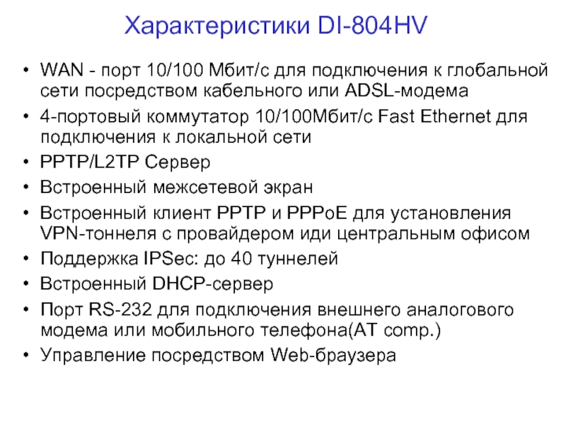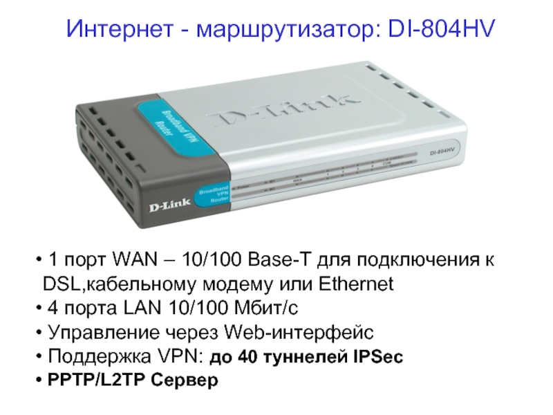 Слайд 73Интернет - маршрутизатор: DI-804HV