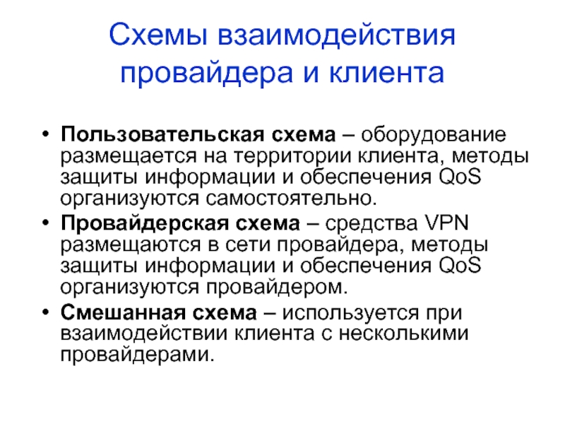 Слайд 10Схемы взаимодействия провайдера и клиента