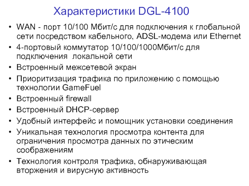 Слайд 82 Игровой маршрутизатор DGL-4100