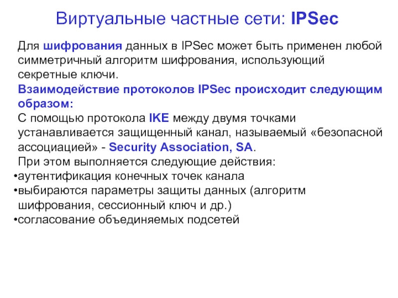 Обеспечение безопасности информации VPN – ряд мероприятий по защите трафика корпоративной сети при прохождении по туннелю от внешних и внутренних угроз.