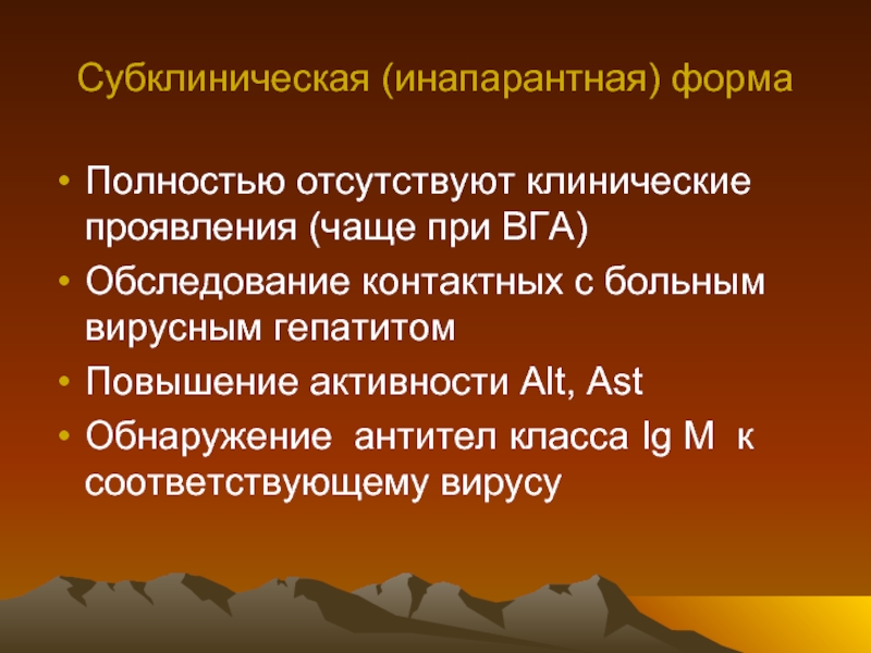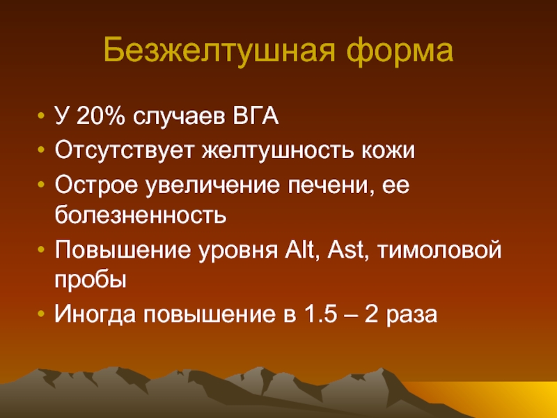 Повышение активности трансаминаз (незначительно при ВГВ, ВГД, ВГЕ)