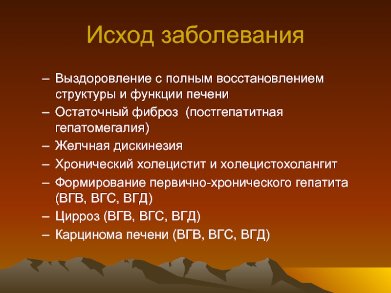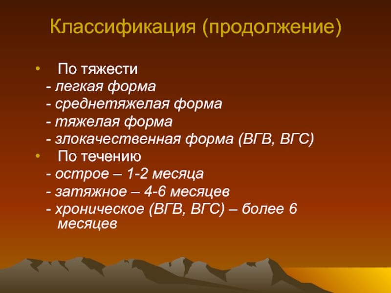 - хроническое (ВГВ, ВГС) – более 6 месяцев