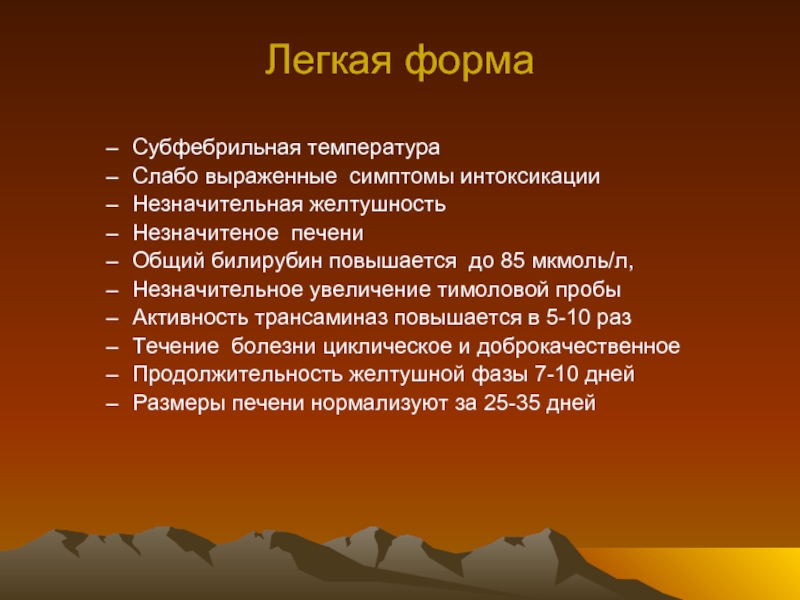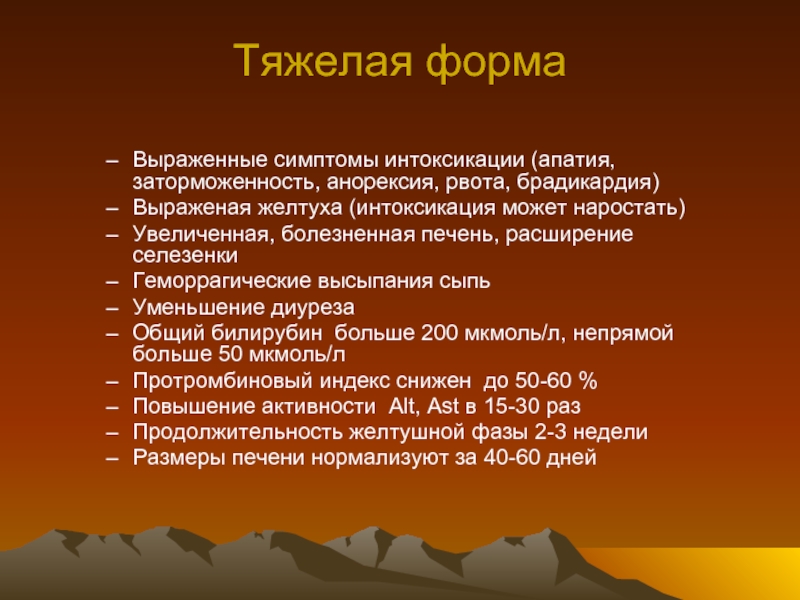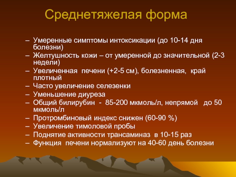 - повышение билирубина в 2-10 раз, ферментов в 5-10 раз