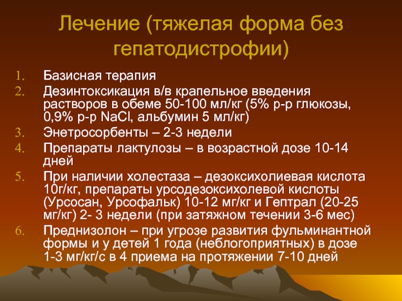 Слайд 52Лечение (тяжелая форма без гепатодистрофии)