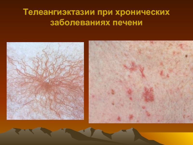 Слайд 58Телеангиэктазии при хронических заболеваниях печени