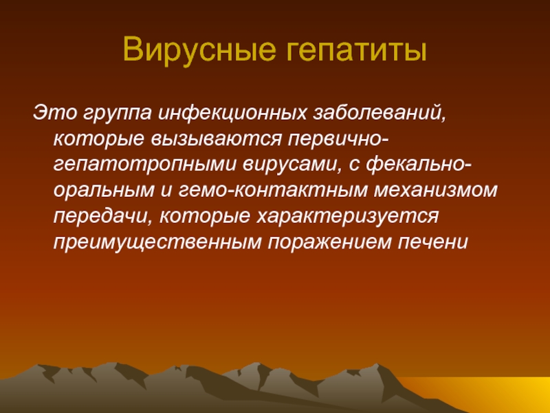Это группа инфекционных заболеваний, которые вызываются первично-гепатотропными вирусами, с фекально-оральным