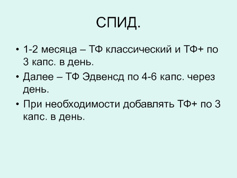 в течение 3-х месяцев, затем контроль. При отсутствии вируса – переход на поддерживающую дозировку: ТФ Эдвенсд – 2 капс. в день.