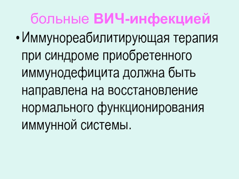 Иммунореабилитирующая терапия при синдроме приобретенного иммунодефицита должна быть направлена на