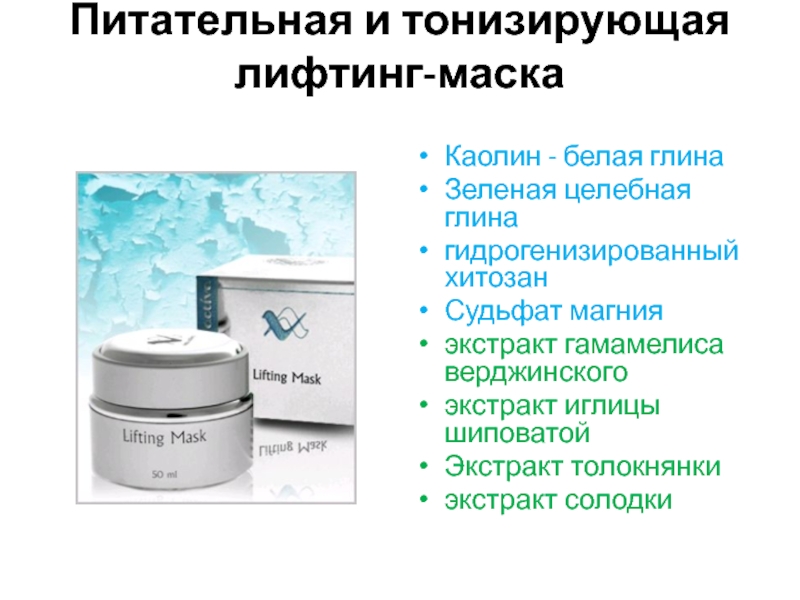 Слайд 34Питательная и тонизирующая лифтинг-маска