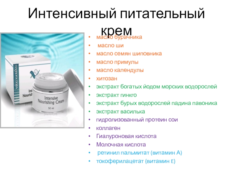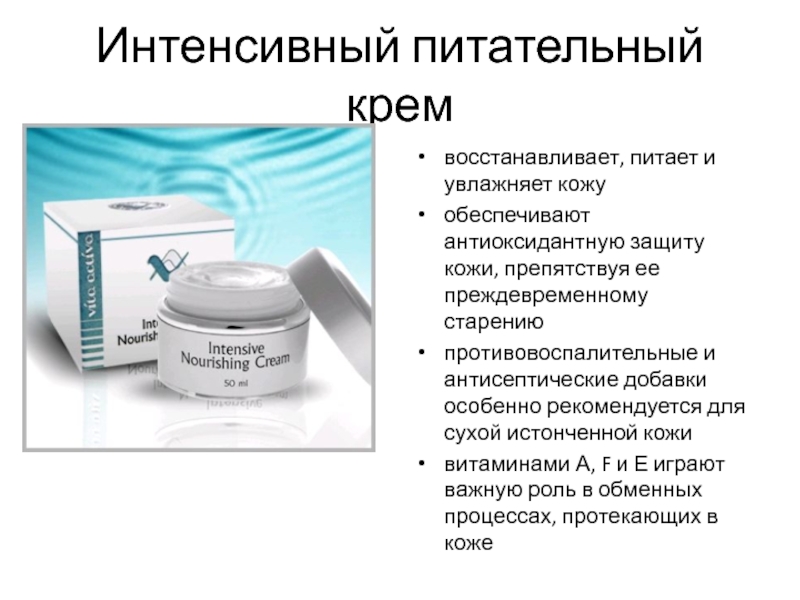 Слайд 14Интенсивный питательный крем