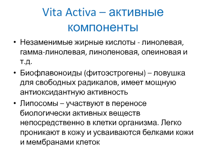 Слайд 3Vita Activa – активные компоненты