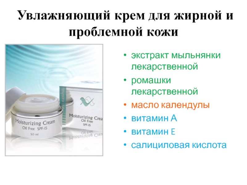 Слайд 11Увлажняющий крем для жирной и проблемной кожи