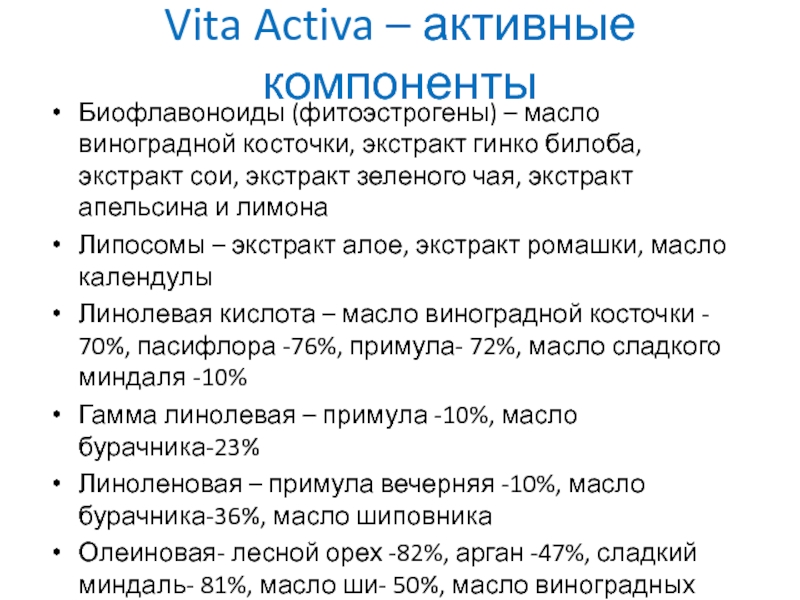 Слайд 4Vita Activa – активные компоненты
